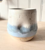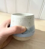Belle tasse pousse bleue mat et blanc pyrite.