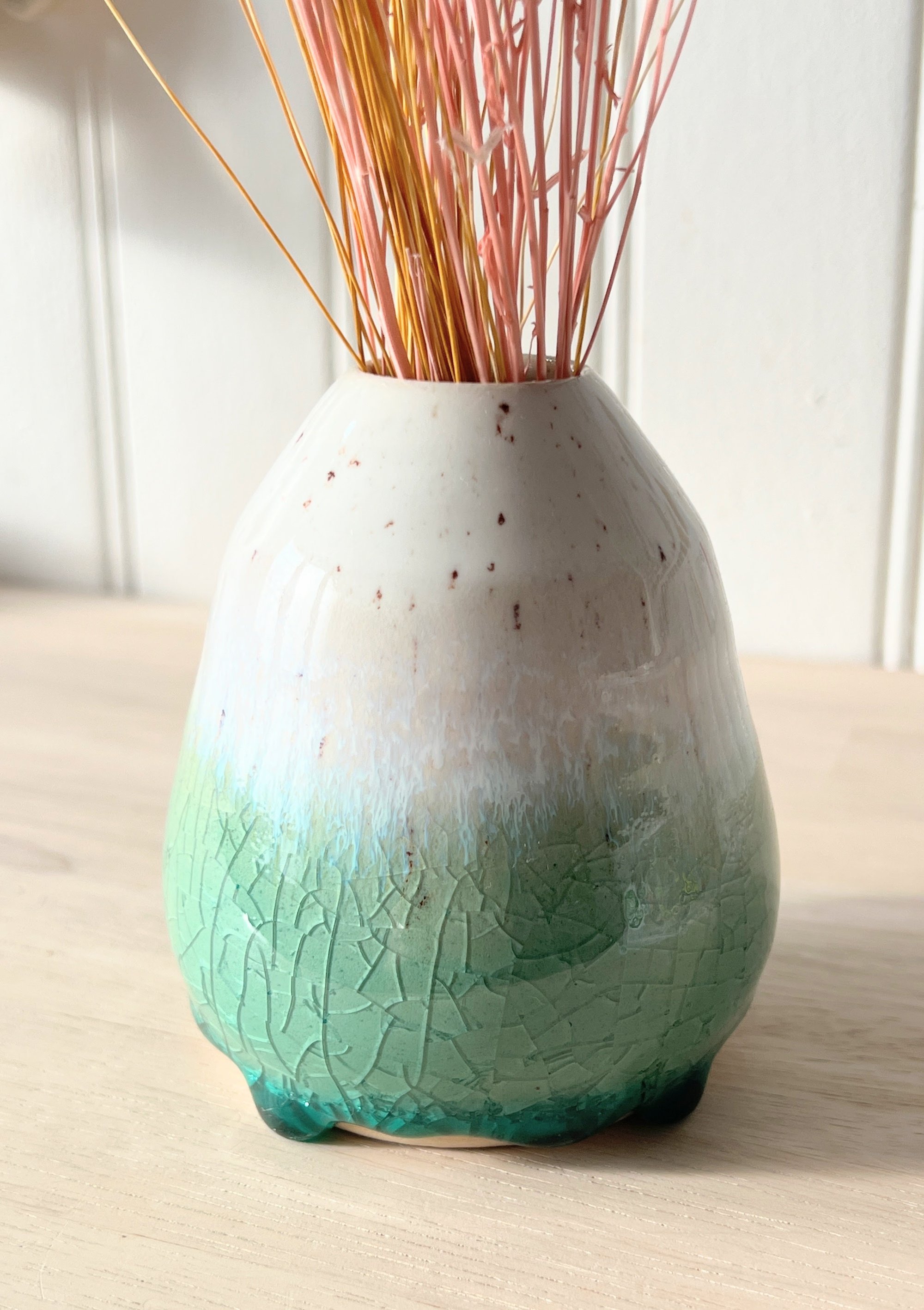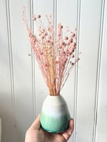 A delicate little bud vase, perfect for showcasing a few stems of dried blooms or a petite bouquet of wildflowers.